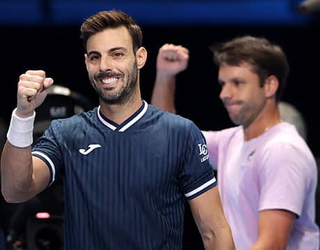 男子テニス最終戦のNitto ATPファイナルズ(イタリア/トリノ、室内ハード)は大会3日目の16日、「グリーングループ」第2戦が行われ、第4シードのM・グラノジェルス(スペイン)/ H・セバリョス(アルゼンチン)組が第1シードのN・メクティッチ(クロアチア)/ M・パビッチ(クロアチア)組を6-4, 7-6 (7-4)のストレートで破って開幕2連勝を果たし、決勝トーナメント進出を決めた。