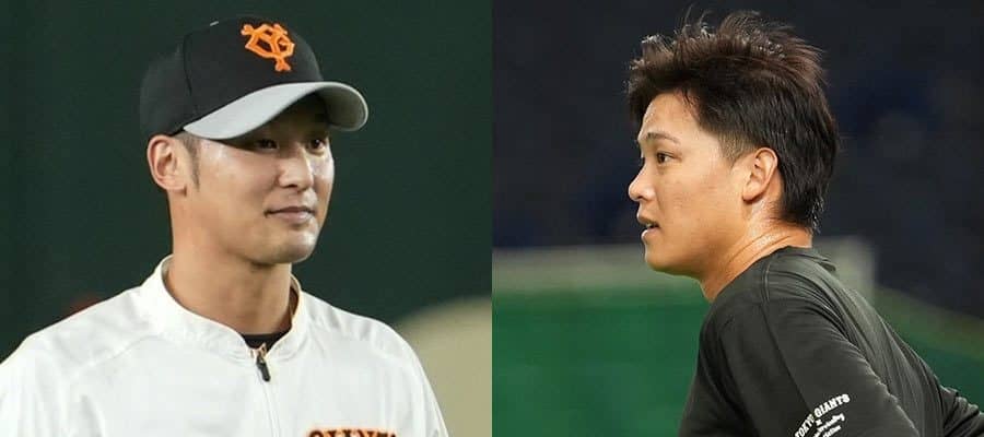 巨人・吉川尚輝(左)と石川慎吾【写真:荒川祐史】