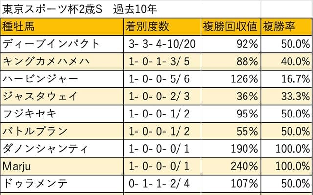 20日に東京競馬場で行われる東京スポーツ杯2歳S(2歳・GII・芝1800m)について血統・種牡馬別に検証していく。…