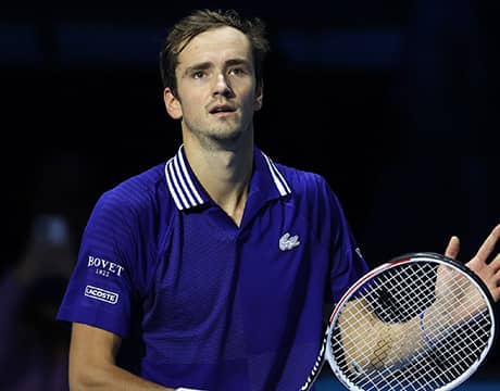 メドベージェフは大会3日目となる16日に第3シードのA・ズベレフ(ドイツ)を6-3,6-7 (3-7),7-6 (8-6)のフルセットで破り、ラウンドロビン2連勝をあげて決勝トーナメント進出を決めた。2012年から2015年にかけて4連覇しているN・ジョコビッチ(セルビア)以来の、シーズン最終戦連覇を目指している。