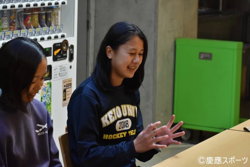 佐藤:ちょうど前に話したね(笑)。私は今まで中高6年間はテニスをやっていたんですけど、どんなに強くなってもこの相手は難しいと思う相手が出てくると、個人競技だと本当に勝てないと壁を感じたのでチームスポーツを大学ではやってみたいと思ってホッケー部に入部しました。1対1では勝てない相手でも1対2とできるのがチームスポーツのいいところかなと思ったのでそれが実感できてよかったなと思います。