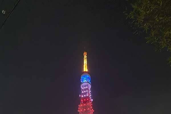 【動画】東京タワーがエンゼルスカラーに染まる 17時17分の点灯の瞬間