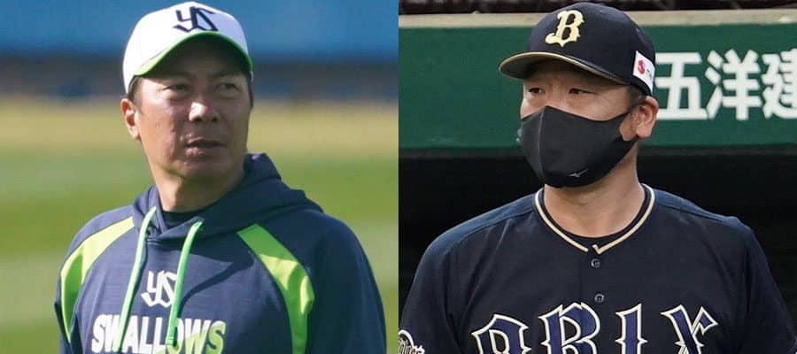 ヤクルト・高津臣吾監督(左)とオリックス・中嶋聡監督【写真:荒川祐史】