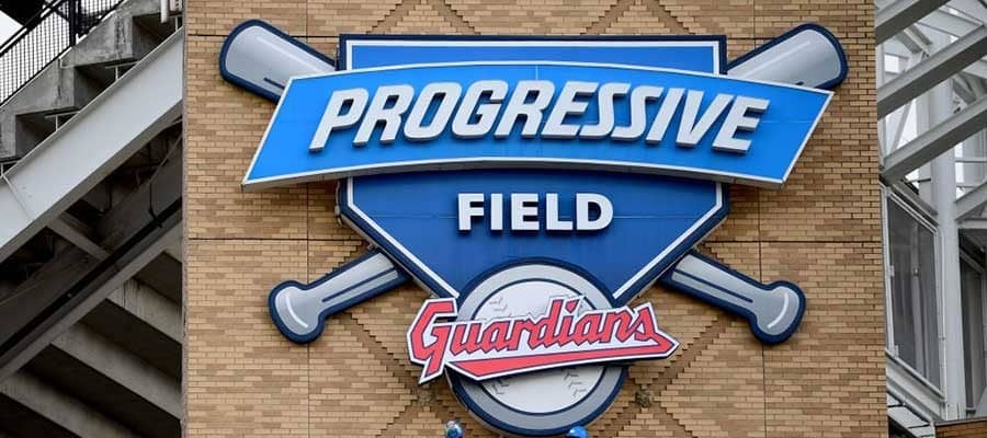 本拠地プログレッシブ・フィールドに「ガーディアンズ」のロゴを取り付ける様子【写真:Getty Images】