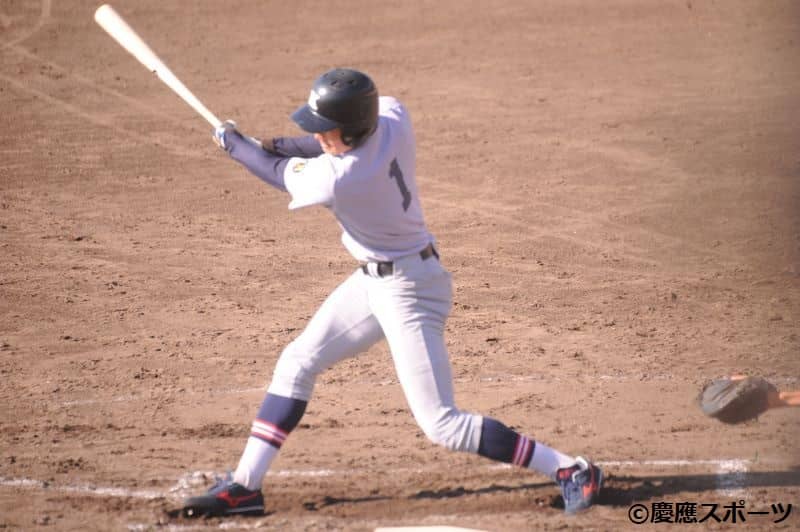 同点に追い付く適時打を放った古野昨日の苦い敗戦から一夜明け、どうにかして一勝を掴みたい慶大は東海大海洋学部との一戦に挑んだ。試合は慶大が初回に相手投手の暴投で先制するが、3回表に相手に同点とされ、6回表には逆転される。慶大は、その直後に追い付くがあと一本が出ず、試合は連盟規定により引き分けの結果となった。