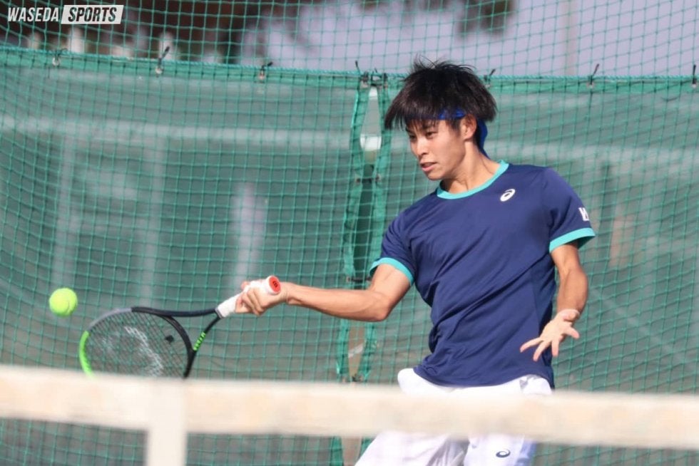 渡部は明大の町田晴と対戦。第1セットは集中力高くラリー戦で相手を上回り、6-2ですんなりと獲得する。しかし、第2セットは先にブレークを許し、セット中盤にブレイクバックしたが、相手のファーストサーブが入るようになり、先に鋭いストロークを決められる展開が続き、タイブレークの末に落としてしまう。それでも第3セットは「自分のやるべきことを意識しました」(渡部)とラリーをつなぐ。相手も緊張からか第2セット後半のように果敢には打ってこなくなり、ミスがなかった渡部が接戦を制した。高畑は試合序盤から相手の攻めをしのぐところと、逆にストロークで攻めにいくところのメリハリをつけてラリーした。第1、第2セットともにセット中盤から相手を突き放してこの試合も安定して勝利を収めた。藤岡凌大(文構2=東京・早実)、山口柚希(スポ1=鹿児島・鳳凰)はストレート負け。藤岡は2回戦と同様に丁寧にラリーを続けたが、相手もなかなかミスをせず、先に攻められてしのぎきれない。果敢に攻めた場面もあったが、相手に対応され初のベスト8進出とはならなかった。山口は序盤から決め球のミスが続き、波に乗れない展開。第2セットに入ってもなかなか修正できず、敗れた。