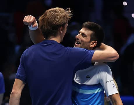 男子テニス最終戦のNitto ATPファイナルズ(イタリア/トリノ、室内ハード)は大会7日目の20日、シングルス準決勝が行われ、第1シードのN・ジョコビッチ(セルビア)は第3シードのA・ズベレフ(ドイツ)に6-7 (4-7), 6-4, 3-6のフルセットで敗れ2018年以来3年ぶり8度目の決勝進出とはならなかった。試合後には「タフな試合だったよ。でも、楽しかった」と満足感を語り大会をあとにした。