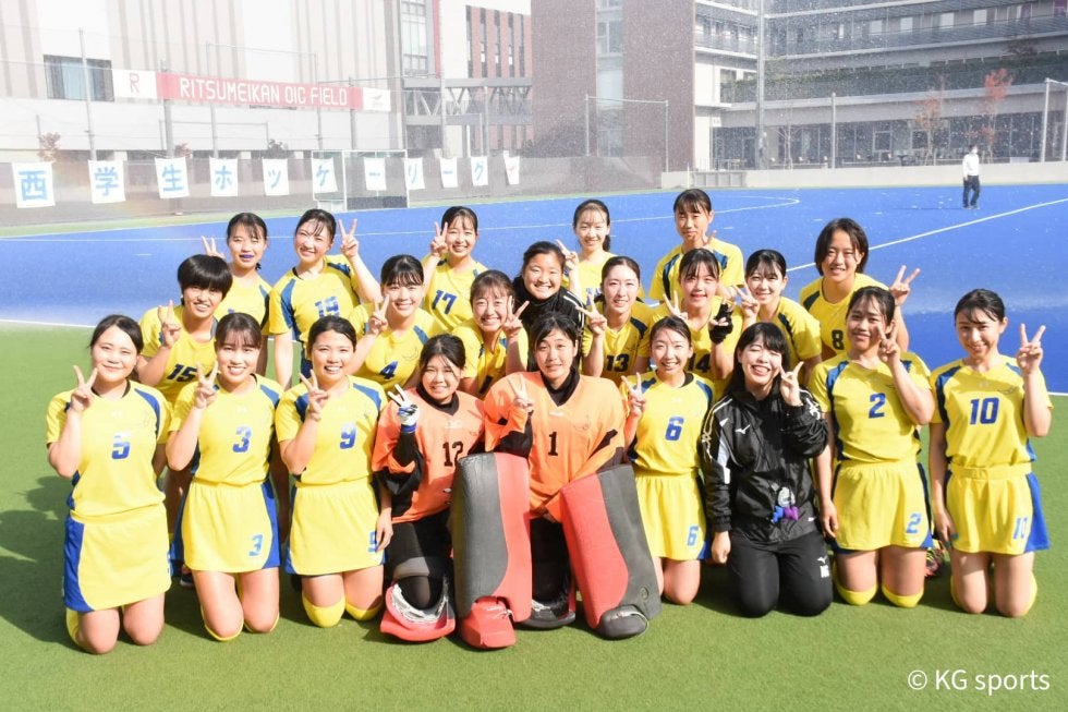 <写真・リーグ最終戦を勝利で飾った選手たち> 11月21日、立命館OICフィールドにて令和3年度関西学生ホッケー秋季リー…