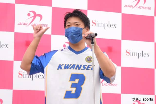高野順平主将 「北大は守備で仕掛けてくるチームだという印象を持っていた。学生日本一を目指しているが、まずは1戦1戦に真摯(しんし)に向き合おうという話をした。苦しい試合になると思っていたが、高見を中心に積極的な攻撃ができた。(自身の得点について)試合前から絶対に得点すると言っていたので、有言実行できてうれしい。決勝戦の相手である慶大は、学生ラクロス界の王者という印象。対戦することを今から楽しみにしている。駒沢の舞台は僕たちにとって初めてだが、物怖じせず挑みたい。優勝して、関学が日本一にふさわしかったと言われるようなプレーがしたい」