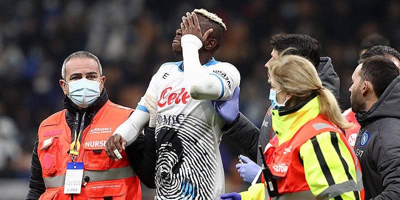 オシムヘンは、21日に行われたセリエA第13節のインテル戦(2-3で敗戦)に先発出場。だが、後半立ち上がりに味方のクロスに飛び込んだ際、相手DFミラン・シュクリニアルと激しく激突し顔面を負傷していた。