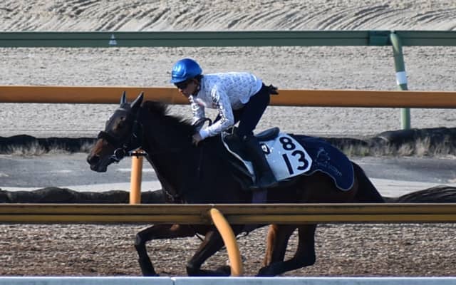 福永祐一騎手が跨り、CWで単走。馬の少ない時間帯ではあったが、落ち着いた雰囲気で馬場入りして、追い切り開始までのキャンターもゆったり。個人的には一走ごとに精神的な成長を見せているような気がする。