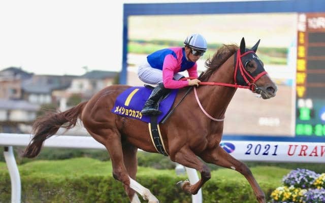 スタートしてのダッシュがよかったのは隣のメイショウダジンだが、同馬主だからというわけでもないだろうが、道を譲られるようにメイショウカズサが予想通り逃げる形となった。レース中盤でペースを落として、1000m通過が63秒9というスローペース。勝因は、向正面中間から早めにペースアップしたこと。後続に早めから脚を使わせ、ヴェルテックス、ウェスタールンドら、直線切れ味勝負の馬たちの末脚を完璧に封じた。