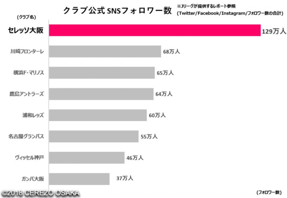 Jクラブの中でもセレッソ大阪のSNSフォロワー数は突出して多い