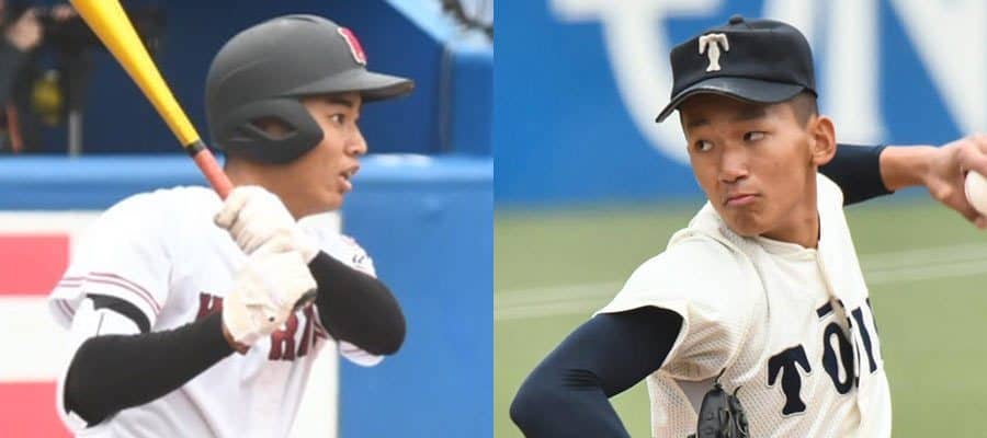 広陵・真鍋慧(左)と大阪桐蔭・前田悠伍【写真:中戸川知世】