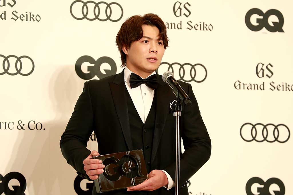 -受賞した感想 GQメンオブ・ザ・イヤーという賞は前々から知っていたので、自分自身このような賞をいただけるのはとても嬉しく思います。