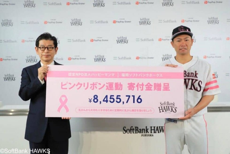 代表的な活動は、中村晃選手の『ピンクリボン運動』です。当初はホークスでコーチを務めていた鳥越裕介さん(現・千葉ロッテマリーンズ2軍監督)が、先頭にたって活動を行っていましたが、2018年より中村選手がその想いを引き継いで積極的に活動をしています。