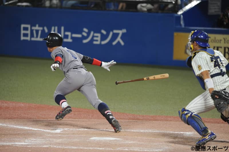 慶大本塁打:萩尾2号2ラン(3回)、廣瀬2号ソロ(8回)