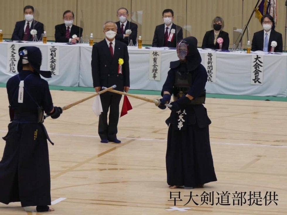 大正14年から続く、伝統ある早慶対抗試合(早慶戦)が帰ってきた。昨年は新型コロナウイルスにより中止された早慶戦は、今年は念願の有観客で開催された。2年前に慶大に優勝を譲った早大は、雪辱を果たすべく、気迫十分で大会に挑んだ。20人勝ち抜き戦の、両校の意地をかけた戦い。総試合数35試合、大将戦まで勝負が持ち越された末、軍配が上がったのは惜しくも慶大だった。