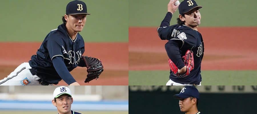オリックス・山本由伸、宮城大弥、ヤクルト・奥川恭伸、高梨裕稔(左から時計回り)【写真:荒川祐史】