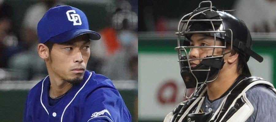 中日・又吉克樹(左)と阪神・梅野隆太郎【写真:荒川祐史】