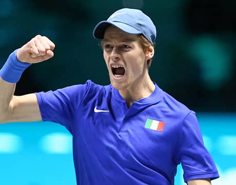 ファイナルセット、お互いに1度ずつブレークして迎えた第6ゲームから4ゲームを連取したシナーが2時間55分で勝利。イタリアが1勝1敗に追いついた。