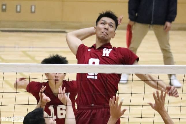 全日本学生選手権(全日本インカレ)準々決勝で4強入りをかけて中京大と対戦した。1セット目はサイドアタッカーを中心に得点し、2セット目は一進一退の展開となるもののブロックが要所で大きな効果を発揮。徐々に点差を広げ相手の追い上げを振り切った。3セット目はサーブとブロックがかみ合った早大らしいバレーを披露。セットカウント3-0(25-21、25-20、25-17)で勝利し、準決勝に駒を進めた。