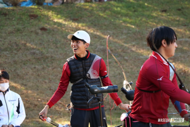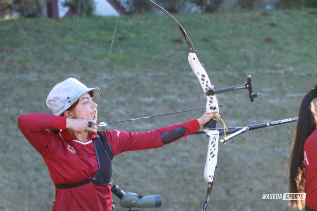 男子と女子でレベルや組織の状況が違います。男子は人数が少ないです。かろうじて来春はリーグ戦を戦えますが、先を見据えたときに今の状況では良くないと危機感を持っています。男子のチーム状況としては順調に来ています。彼らの頑張りで来春が楽しみです。しかし、チームを支えている1、2年生のこの先を考えるともう一段の底上げが必要です。雰囲気も良くモチベーションも高いので、単年度のチームマネジメントはうまくできていますが、それを継承して次の代に繋がるように飛躍がより大きく求められるのが男子チームの特徴です。女子チームに関しては、人数は男子に比べればいます。大学でアーチェリーを始める部員もいますので、その子たちの伸びが期待できます。その中では今日出場した選手の中で塚本、廣瀬は1年生ですが大学でアーチェリーを始めて今日メンバーに入っています。これは人数的な事情で入れたのでは無く、春に協議をスタートして秋の段階で70mを射てているのは他校と比べても特筆すべきものがあります。夏の間に集中的に射ちこんでいた姿など、彼女らの頑張りのおかげだと思います。下の子たちが伸びていて、全国規模ではまだですが、彼女らが上の層の子たちに刺激を与えているという意味で女子チームのチーム力は活性化しており楽しみです。