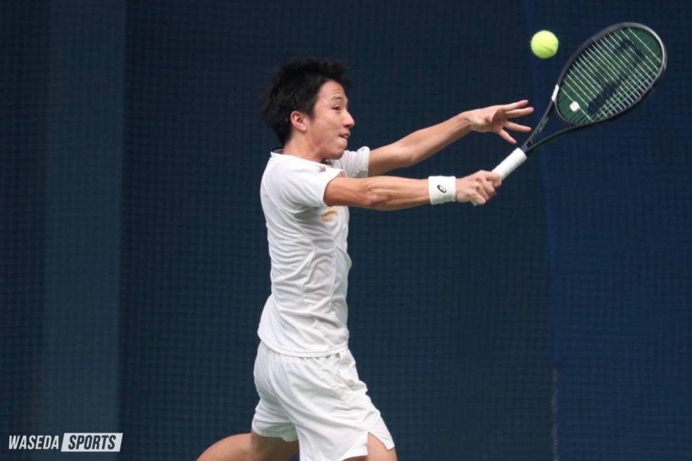 高畑里玖(社2=兵庫・相生学院)はここまで早大の選手を破って勝ち上がってきている中川舜祐(法大)と対戦。第1セットは「何もできずに取られてしまった」(高畑)と振り返るように相手のスピードのあるストロークに対応できず、1-6であっさりと取られてしまう。第2セットに入ってからはファーストサーブを入れてサーブから崩すことでなんとか序盤はキープできたものの、集中力を持続させられず。最後は相手に押しきられ、完敗となった。池田は最初のサービスゲームで得意のファーストサーブに対して好リターンを返されたことから、ラリーで勝負するテニスに軌道修正。フォアハンドを主体に攻めるプレーを展開した。しかし、0-3となってからはブレーク、キープとゲームを連取しても、また2ゲームを奪われて離されるという展開が続き、4-6でこのセットを落としてしまう。第2セットはラリー戦で正確にライン際を打ち抜いてくる藤原に中盤以降、突き放されてストレート負けとなった。白石は第1セット序盤、デュースを取りきれないなど、連続でゲームを奪うことができなかったが、第6、7ゲームを連取して1ブレークアップの4-3とする。そこから4-5とされたが、最後は攻めのギアを上げて7-5とし、第1セットを獲得した。しかし、第2セットは相手の猛攻が続く中、守りきることができず、前に出ても決めきれないなど噛み合わないようなプレーが続き、キープはできてもブレークすることができない。並行カウントの4-5で迎えた第10ゲームをブレークされ、このセットを落とした。それでも第3セットは足を動かして相手の果敢な攻撃に対して粘り強くプレー。これがポイントにつながり、序盤からリードしてなんとか10-4で勝ちきった。