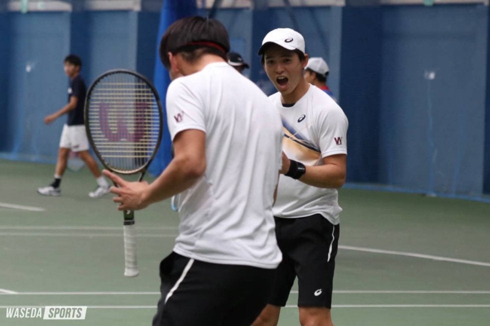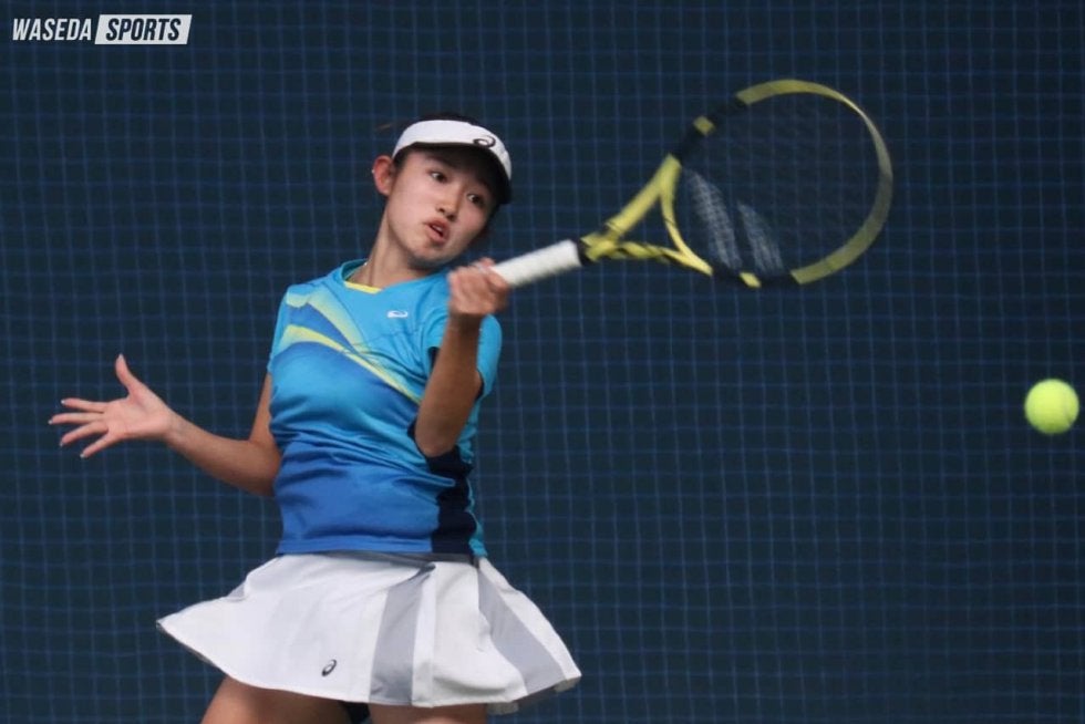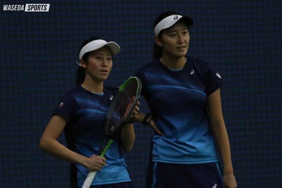 石川琴実主将(社3=神奈川・白鵬女)・吉岡組は石川の後ろでのラリーを中心に展開し、前は吉岡がしっかりカバーするというかたちが機能。第1セットはなかなか相手を突き放せなかったが、4-5の第10ゲームから3ゲームを連取して7-5でこのセットを獲得した。第2セットも接戦が続き、互いにゲームを取り合う。なかなか離せずタイブレークに突入してしまったが、最後はミスの多かった相手に対して安定感のあった石川・吉岡組に軍配。ベスト4進出を決めた。神鳥・齋藤優寧(スポ1=岡山学芸館)組は第1セットこそ、攻撃がかみ合わず0-6で落としたが、第2セット以降はプレーを修正。神鳥の絶妙なロブで相手の陣形を崩すなど、しっかりとお互いの得意な後ろでのラリー戦を展開。ミスも減らし、神鳥、齋藤ともに強力なストロークが決まって次第に後ろで相手を崩せるようになる。後半はポーチボレーなども決まるようになり、流れに乗って6-1でこのセットを奪取した。第3セットは「守って負けるくらいなら打って負けよう」(神鳥)という攻めの気持ちで臨んだ神鳥・齋藤組が序盤からリード。最後は8-8と追いつかれたものの、攻めの姿勢を貫き、10-8として見事フルセットの試合を制した。2組とも勝ち上がったことにより、準決勝は早大対決となる。どちらが勝つか、注目の一戦だ。