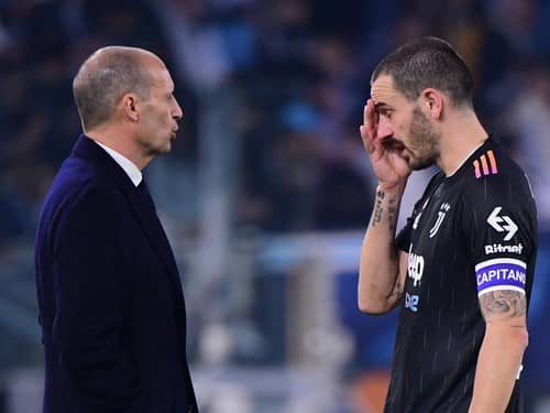 渋い表情のマッシミリアーノ・アッレグリ監督とキャプテンのレオナルド・ボヌッチ photo by Reuters/AFLO