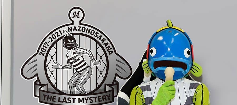 謎の魚は可変キャラクターとして2017年に登場。同年5月26日に第1形態が登場し同28日に第2形態。6月11日に第3形態となり、翌18年6月12日には第4形態、同26日に第5形態まで進化。その後は今年4月6日のオリックス戦(ZOZOマリンスタジアム)で最終形態になっていた。
