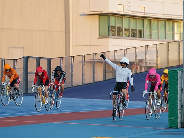 坊っちゃんスタジアムやテニスコート、武道館などがあり、スポーツの発信地でもある松山中央公園に隣接する松山競輪で行われた開設72周年記念「金亀杯争覇戦」。連日、地元の愛媛勢を中心に四国地区の選手が活躍して場内を沸かせた。最終日の決勝では、松本貴治、橋本強、渡部哲男の地元・愛媛3車が、完全優勝を狙う新田祐大、好調の山田庸平や松谷秀幸、粘り強い競走を見せる稲垣裕之などを迎え撃った。ファンの声援を受けた愛媛ラインは、松本がレースの主導権を握ると、ゴール前で橋本が差し脚を伸ばして、うれしい記念初優勝を地元で達成した。
