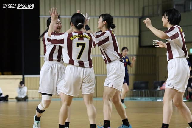 一昨年、同じく早慶戦が行われた際の満員の早稲田アリーナには程遠いが、この2年間見られなかった景色に包まれた早慶定期戦。保護者とOB・OGに囲まれた選手たちはこれまで以上の笑顔を見せ、試合に臨んだ。前半から攻守両面で力の差を見せつけ大量リードで折り返すと、後半も安定した試合運びで点差を広げていき、見事勝利をおさめ、有終の美を飾った。
