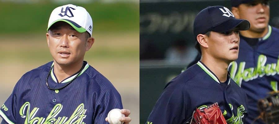 ヤクルト・石川雅規(左)と高橋奎二【写真:荒川祐史】