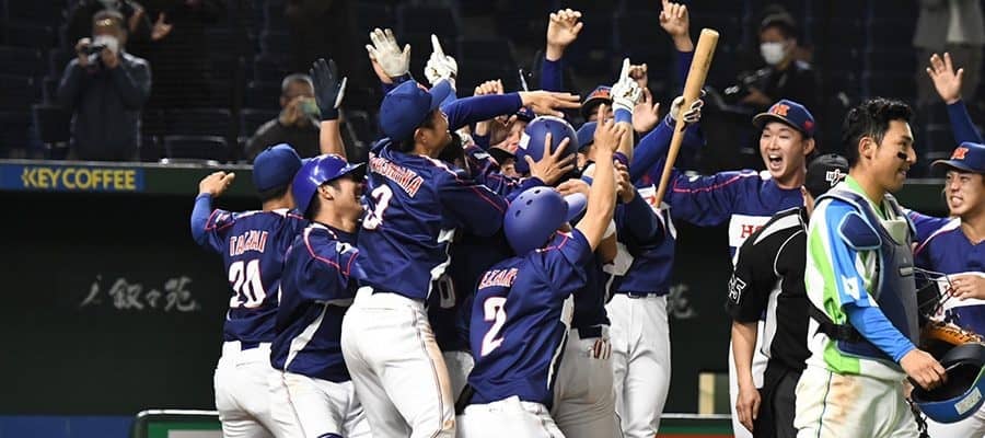 痺れる投手戦。セガサミー先発の草海光貴投手をなかなか捉えられず、8回まで3安打。5回に内野ゴロの間に挙げた1点に抑えられていた。一方でHonda熊本の先発・片山雄貴投手も、安打は許すも粘りの投球で9回2死まで無失点。しかし、完封まであと1人のところで7番・中川智裕内野手に痛恨の左越えソロを被弾し、試合は土壇場で振り出しに戻った。