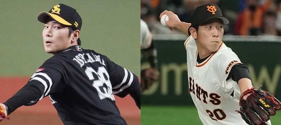 ソフトバンク・石川柊太(左)と巨人・戸郷翔征【写真:荒川祐史】