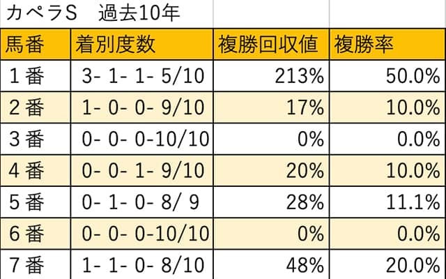 【カペラS 枠順データ分析】基本は外枠有利だが、1枠だけは出色の好成績