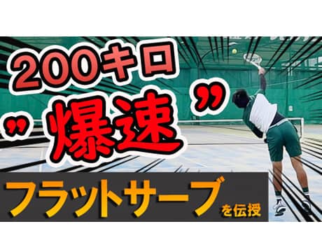 テニス競技者で中級から上級へステップアップを目的としたレッスン動画。今回は【フラットサーブ】のコツを伝授。