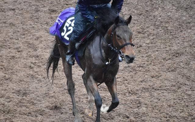 本馬について「12月に入厩して、すぐにゲート試験を合格。順調に調教メニューも消化してくれています。このまま在厩して、デビューを目指していく予定です」と友道康夫調教師。