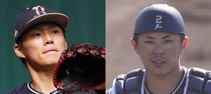 オリックス・山本由伸(左)と若月健矢【写真:荒川祐史】