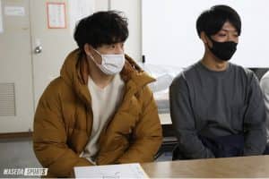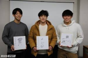 天皇杯全日本選手権直前対談・最終回に登場するのは、安楽龍馬(スポ4=山梨・韮崎工)、米澤凌(スポ4=秋田商)、玉岡颯斗(スポ2=館林)の3人。普段から学年をこえて仲が良いという3人に、今季の集大成とも言える天皇杯全日本選手権の話題からプライベートな話題まで、多岐にわたってお話を伺った。