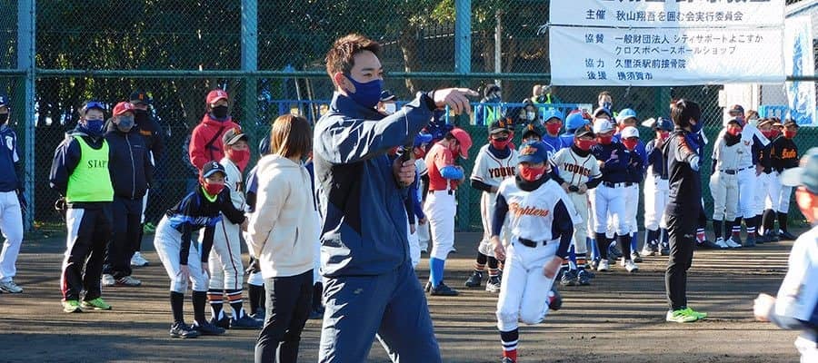 野球教室を開催したレッズ・秋山翔吾【写真:間淳】