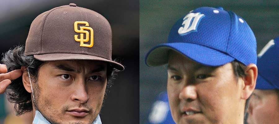 パドレス・ダルビッシュ有(左)とJFE東日本・須田幸太【写真:AP、羽鳥慶太】
