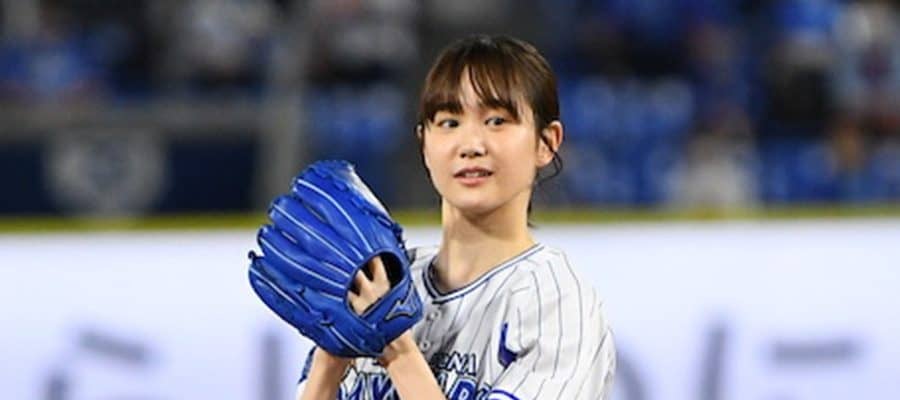 テレビドラマや映画で活躍する女優の尾碕真花さんが横浜スタジアムで始球式