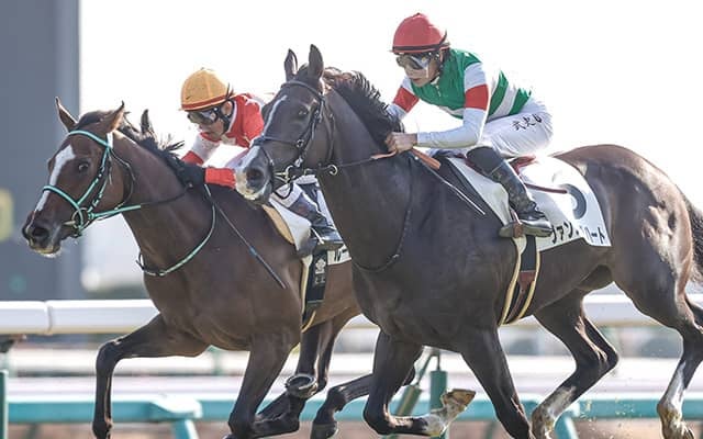 奥が1着馬ルージュエヴァイユ、手前が横山武史騎手騎乗の2着ヴァンガーズハート(撮影:下野雄規)