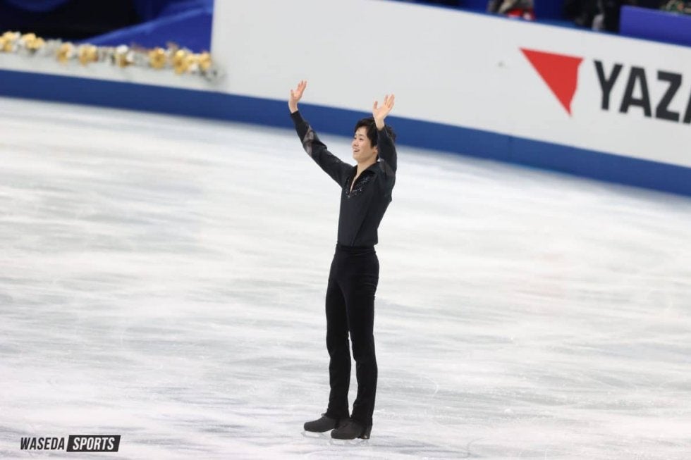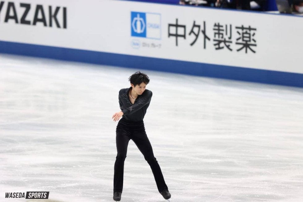 競技2日目に行われた男子ショートプログラム(SP)。フリースケーティング(FS)を最終グループで迎えるためには、90点以上が必要という熾烈(しれつ)を極めた戦いが繰り広げられた。そんな中、島田高志郎(人通2=岡山・就実)は、『Giving Up』を披露。自身の世界観に観客を引き込ませるかのように、華麗な演技を目に入れ、「自分自身の演技を楽しむことができた」と86・76点の9位でSPを終えた。