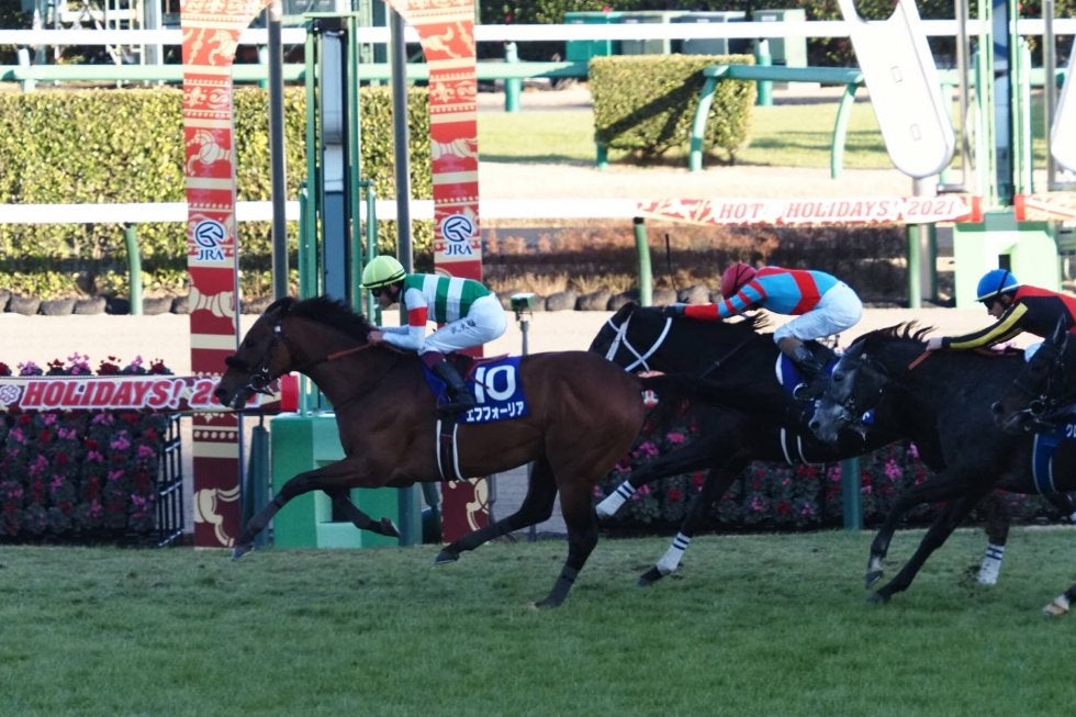 有馬記念を勝ったエフフォーリアは、父エピファネイア、母ケイティーズハート、母の父ハーツクライという血統。北海道安平町・ノーザンファームの生産馬で、馬主は(有)キャロットファーム。通算成績は7戦6勝。重賞は21年共同通信杯(G3)、皐月賞(G1)、天皇賞・秋(G1)に次いで4勝目。鞍上の横山武史騎手、管理する鹿戸雄一調教師は共に同レース初勝利。