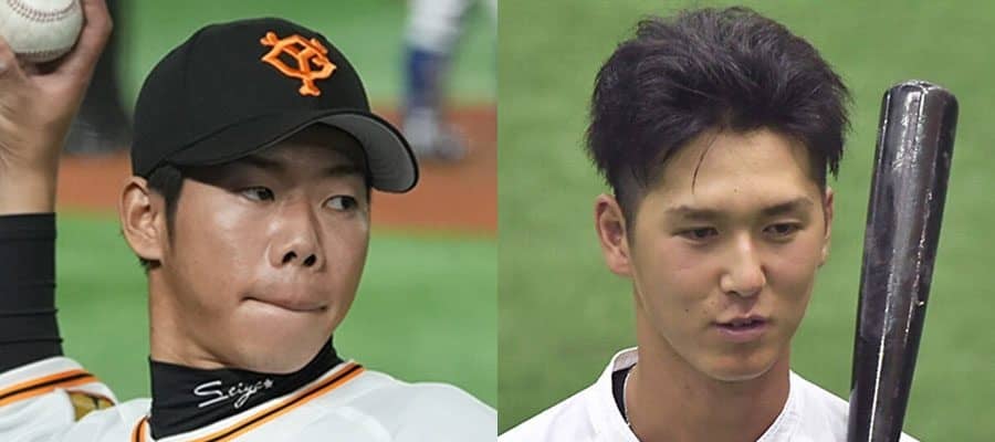 巨人・松原聖弥(左)と秋広優人【写真:荒川祐史、中戸川知世】