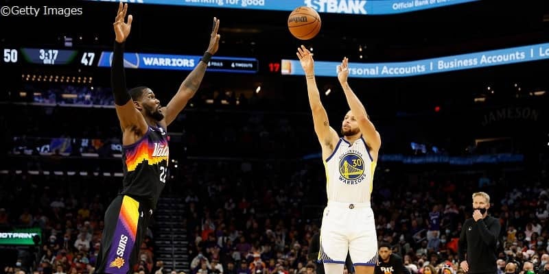 今月中旬にレギュラーシーズンにおける通算3ポイント成功数で歴代トップに躍り出たカリーは、通算2999本と、前人未到の3000本成功まであと1本に迫っている。そしてサンズ戦を終えたカリーは、これで156試合連続で最低1本の3ポイントを成功。自身が保持する157試合連続成功というNBA史上最長記録にあと1試合まで肉薄。