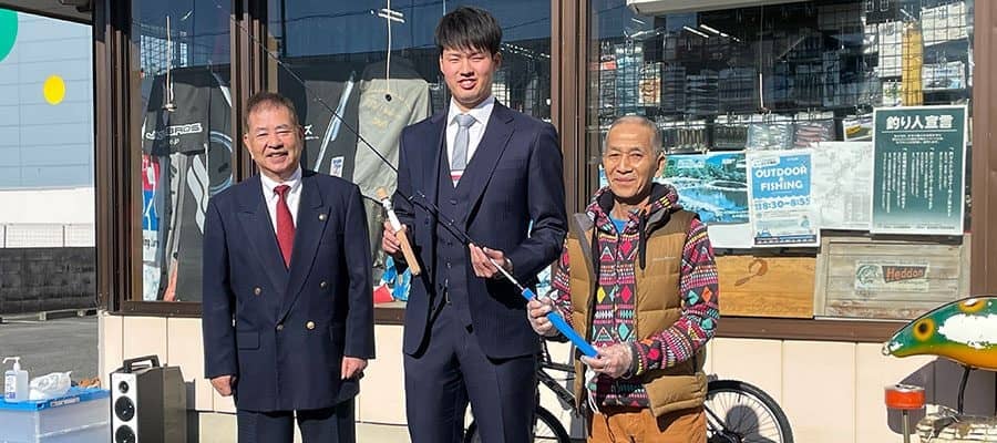 西武・渡邉、「ふるさと応援寄附」の返礼品はルアーロッド 羽生市の贈呈式出席